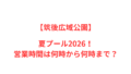 2026年のガーデンプールの営業期間および入場時間は以下の通りです。